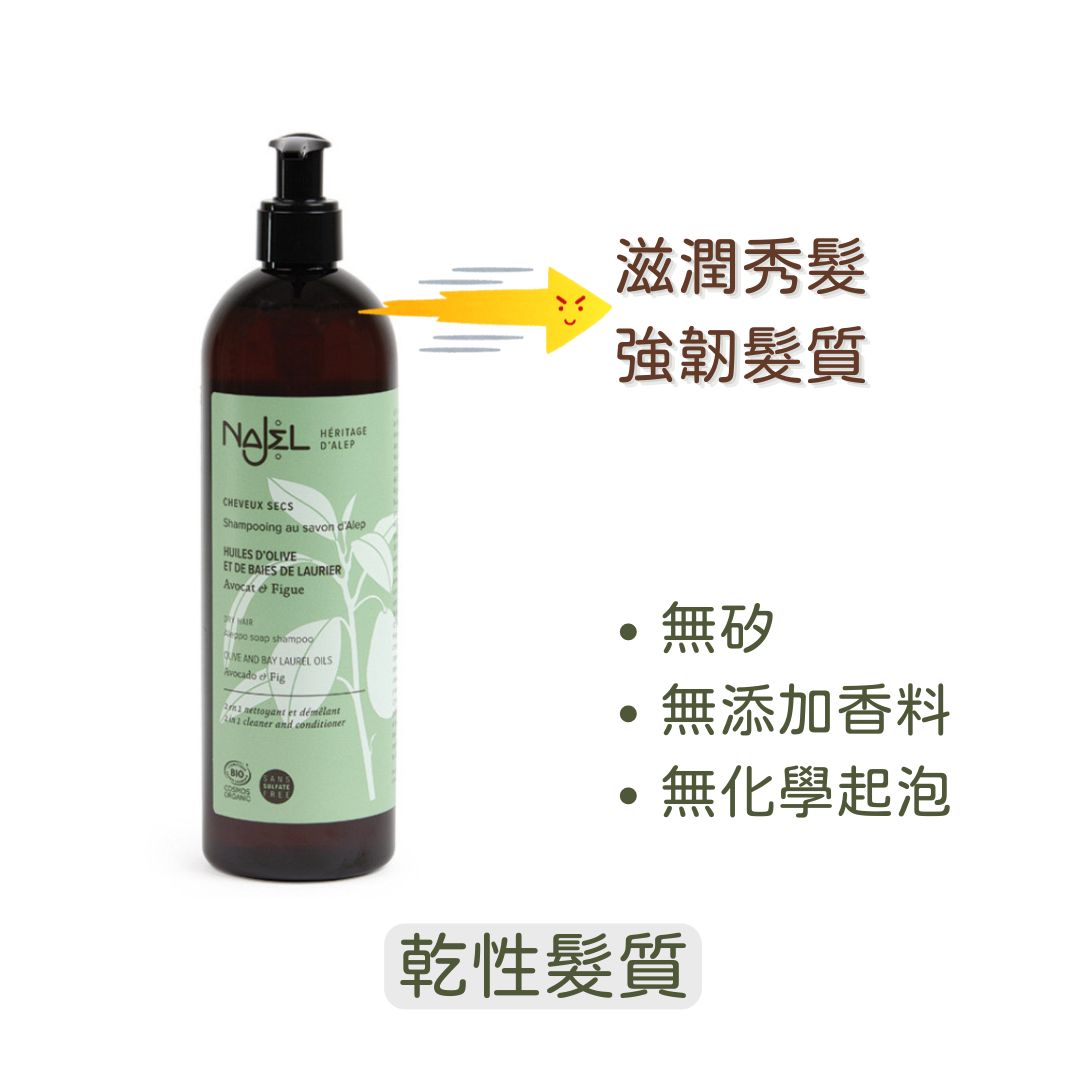 Najel 的2合1洗髮水 (乾性髮質) 成份天然,無矽,無添加香料及化學起泡劑