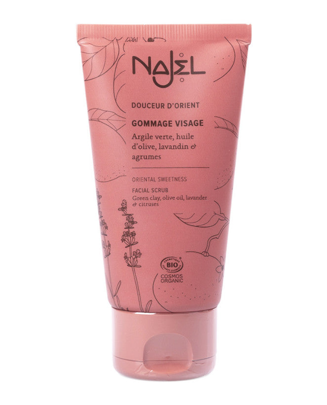 Najel facial scrub gently eliminates impurities from the skin and purifies and nourishes it deep down. The three essential oils of organic hybrid lavender, lemon and grapefruit in the scrub add a pleasant scent of fruit along with the properties of each essential oil: